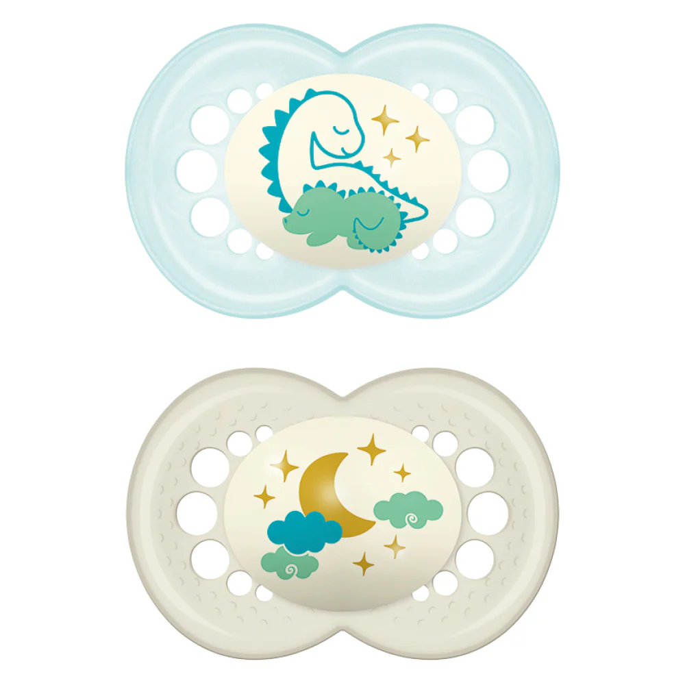 2 Chupetes Silicona Nocturnos 6 Meses Azul