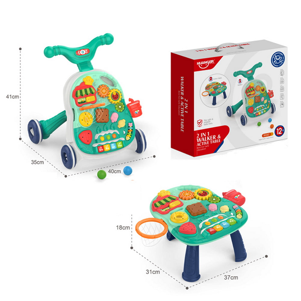 Andador Caminador y mesa para Bebés, un maravilloso compañero de aprendizaje y diversión diseñado para acompañar a los más pequeños en sus emocionantes primeros pasos. Mesa desmontable con música, sonajeros, aro con pelotas, encajes, engranajes. Las ruedas vienen con un tornillo ajustable para regular el giro de las mismas. Utiliza 3 pilas AAA. Medidas caminador 40 x 40 x 32cm. Medidas mesa: 16 x 36 x 30 en caja litografiada de 47x44x47 cm.