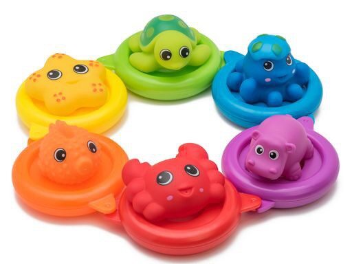 Un ambiente relajado como la hora del baño es un gran lugar para comenzar a introducir las habilidades de conteo y para comenzar a enseñar colores y desarrollar habilidades clave como la coordinación mano-ojo.