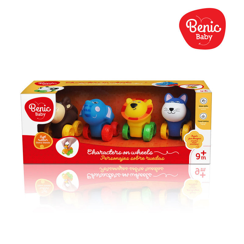 "Animales de vinilo a fricción libre. Incluye: 4 personajes."