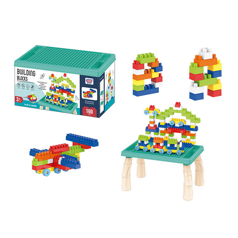 Mesa con bloques de construcción de 160 pzs, diferentes tamaño y colores, libre para construir e imaginar, estimula la coordinación viso... Leer más...