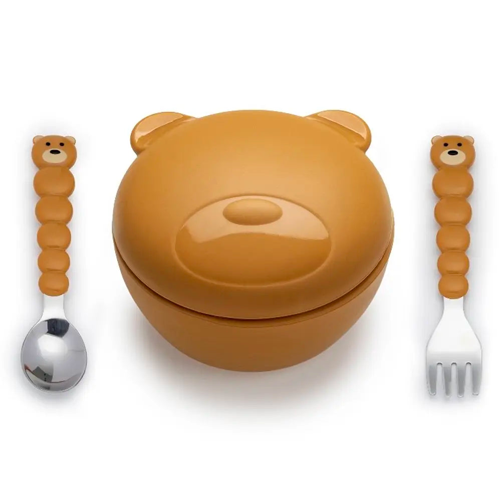 Bowl De Silicona + Cubiertos Oso Con el bowl de silicona en forma de oso tu hijo puede llevar sus colaciones a todas partes y de manera entretenida. ¡Es realmente adorable!