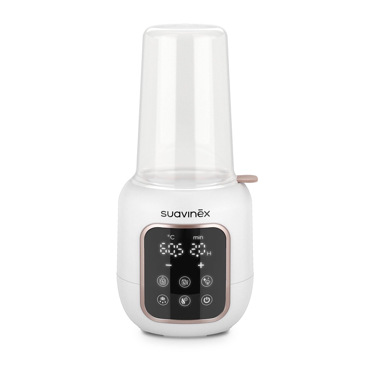 Incluye funciones de baño maría, descongelación, calentamiento rápido, esterilización y calentamiento de potecitos. Su pantalla táctil digital permite configurar el tiempo y la temperatura con facilidad, además cuenta con temporizador y apagado automático para mayor seguridad.