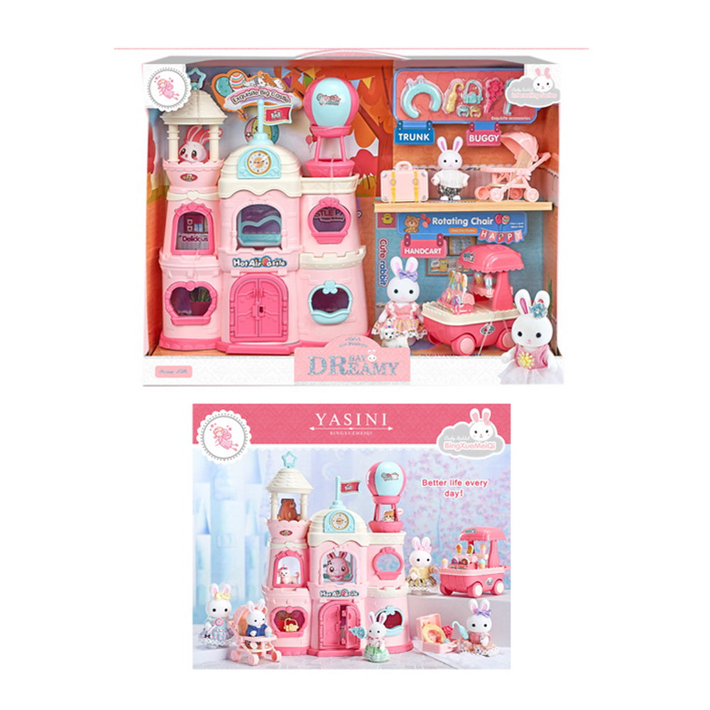 Castillo de conejos, perfecta para tardes entretenidas, incluye conejita con vestido, carrito venta dulces, mini conejita con su coche de... Leer más...