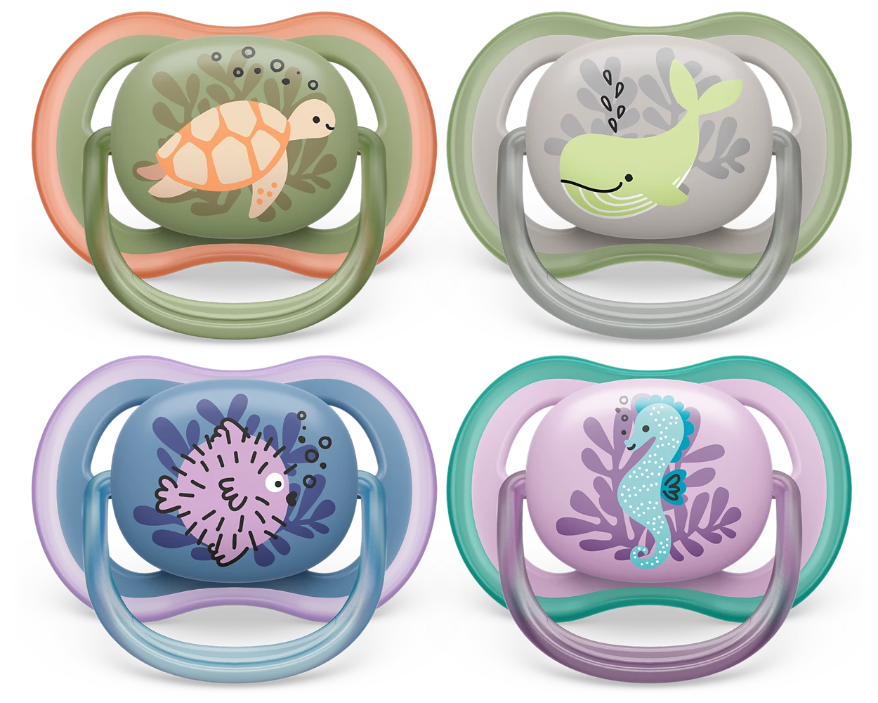 Calma con la comodidad del aire. El chupete Philips Avent ultra air tiene orificios de ventilación extragrandes para mantener la piel de tu bebé seca. Disponible en varios colores y diseños.