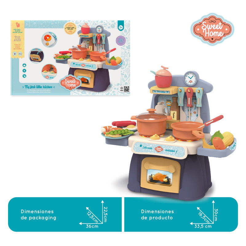 Cocina de juguete con luz, sonido y 26 accesorios.