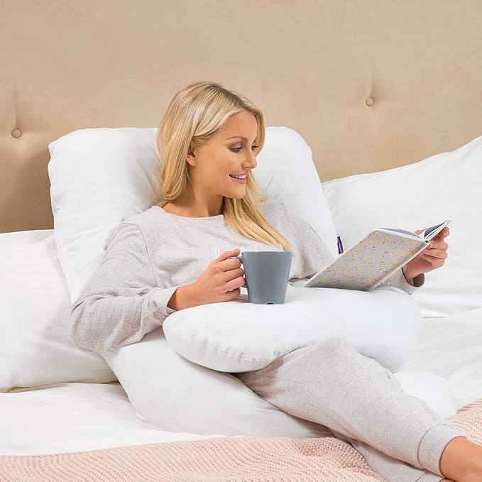 Encontrar una posición cómoda para dormir durante el embarazo puede ser difícil, pero la almohada adecuada puede ser de gran ayuda. Nuestra almohada de maternidad terapéutica para cuerpo y vientre, con diseño ergonómico, ofrece soporte completo para zonas críticas como cabeza, cuello, espalda, vientre, pelvis, cuello y rodillas. Ideal para el embarazo, se adapta a la curva natural del cuerpo y ayuda a combatir la fatiga, mejorar la circulación sanguínea, favorecer la relajación y reducir las molestias causadas por el reflujo y la incomodidad causada por el síndrome de piernas inquietas (SSP).