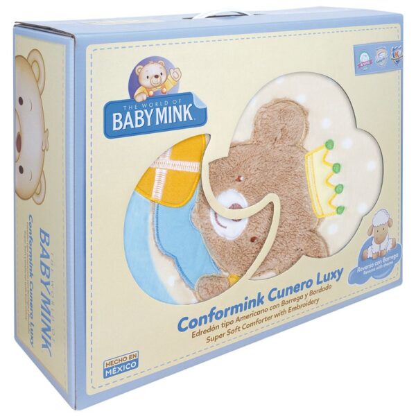 Edredón para cuna tipo americano con borrega y bordado.\nMedida:\n\n130 x 100 cm.\n\nComposición:\n\n100% Poliéster.
