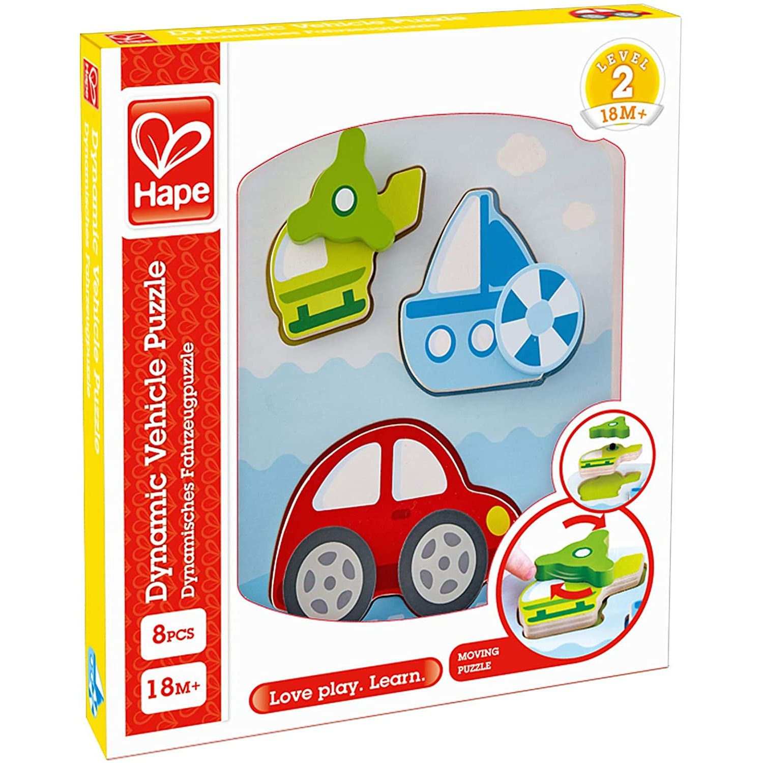 Encaje con tres piezas de medios de transportes, cada pieza con relieve para facilitar el agarre. Estimula la coordinación viso - motora, la motricidad fina, la percepción visual y el inicio del lenguaje.Dimensiones: 22 x 21,5 x 3,8 cm.Edad: + 1 año.Material: Madera.