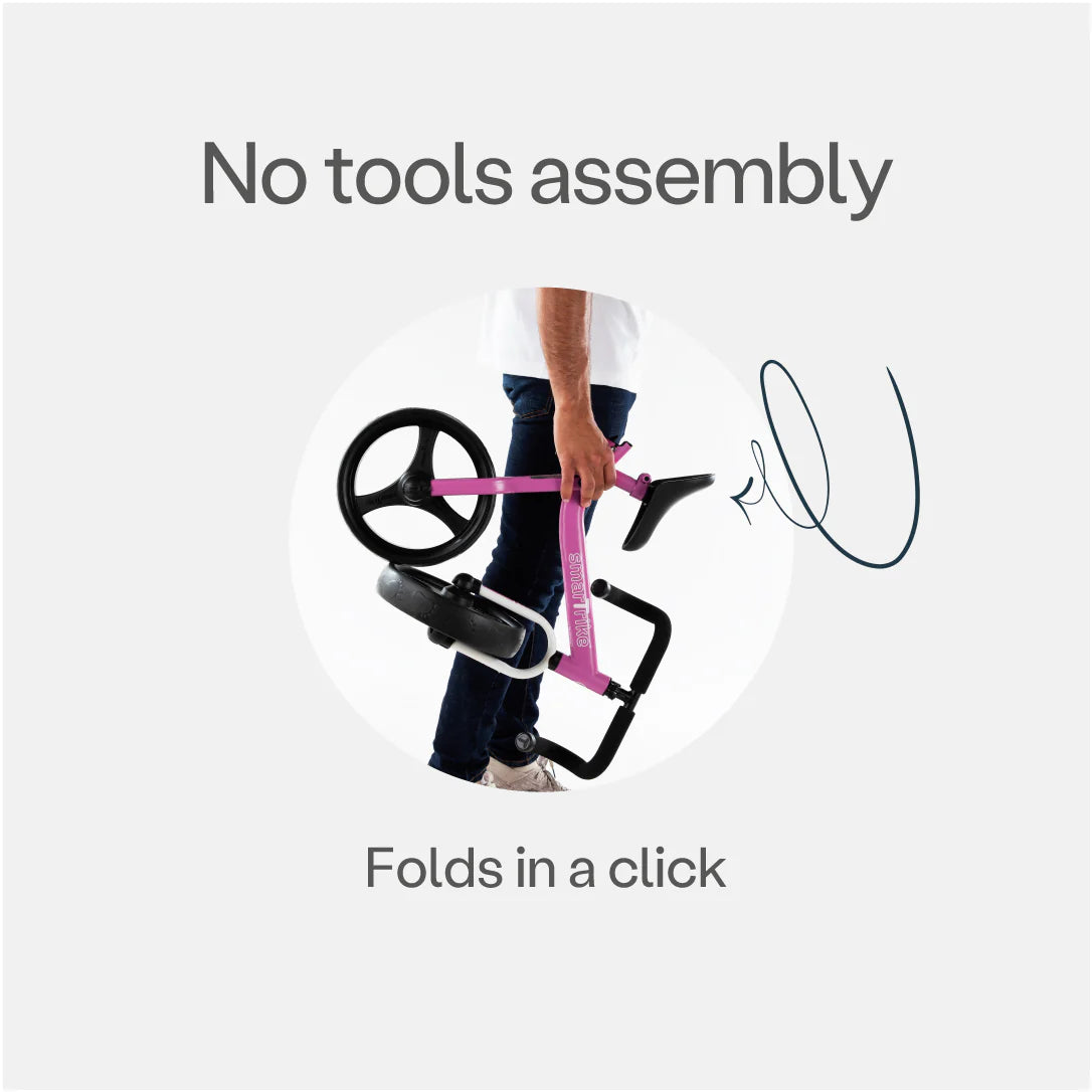 La compacta bicicleta de equilibrio plegable es sinónimo de diversión y aprendizaje. Su sistema de dos etapas se adapta al crecimiento de su hijo y ofrece un inicio temprano para desarrollar su equilibrio, confianza y motricidad gruesa, antes de que aprenda a andar en bicicleta de pedales. El asiento ergonómico, cercano al suelo, se ajusta fácilmente a la altura y las necesidades de su hijo. ¡Incluye equipo de seguridad con cada compra!