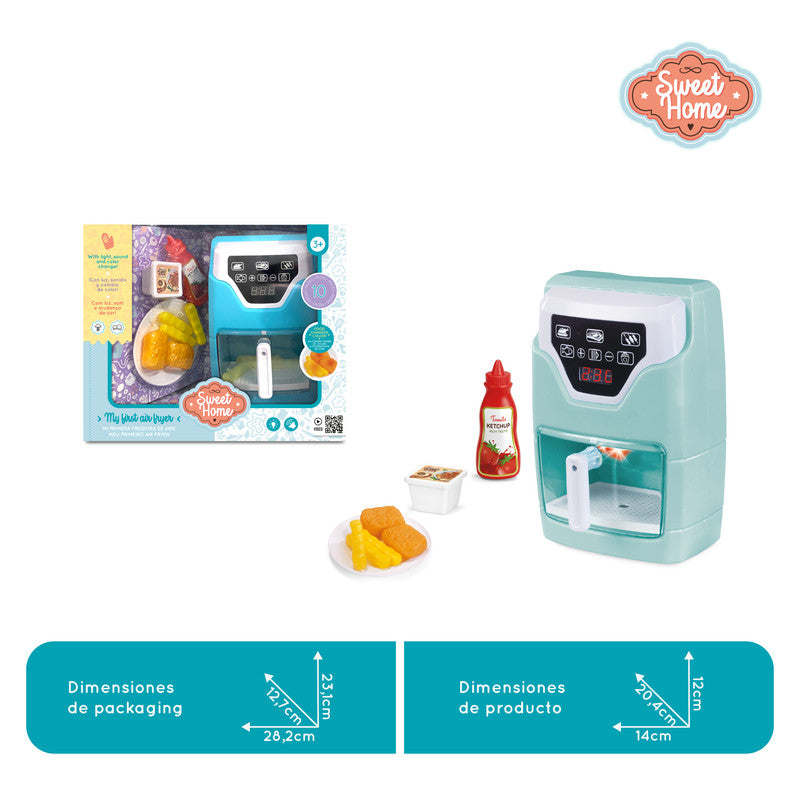 Freidora de aire de juguete con luz, sonido y función de cambio de color en la comida. Incluye 9 accesorios. Leer más...