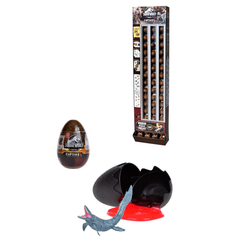 HUEVO CON DINOSAURIO, SLIME, MONEDA Y GUIA JURASSIC WORLD CLASICO (EN FSDU)