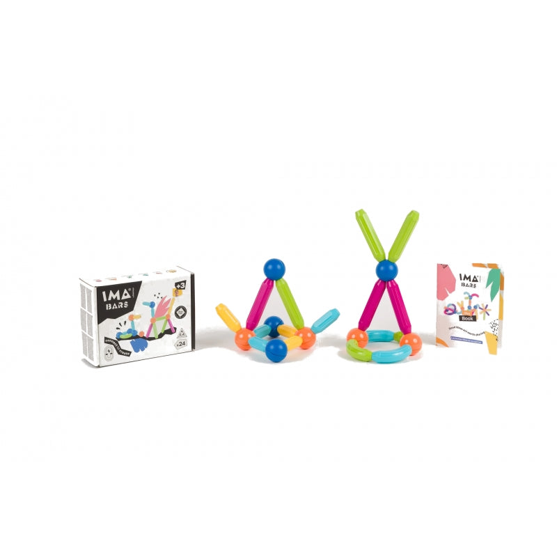 Imabars 24 pieces, 6 half bars, 4 curved bars, 6 bars, 8 balls, 1 booklet and 1 carry bag