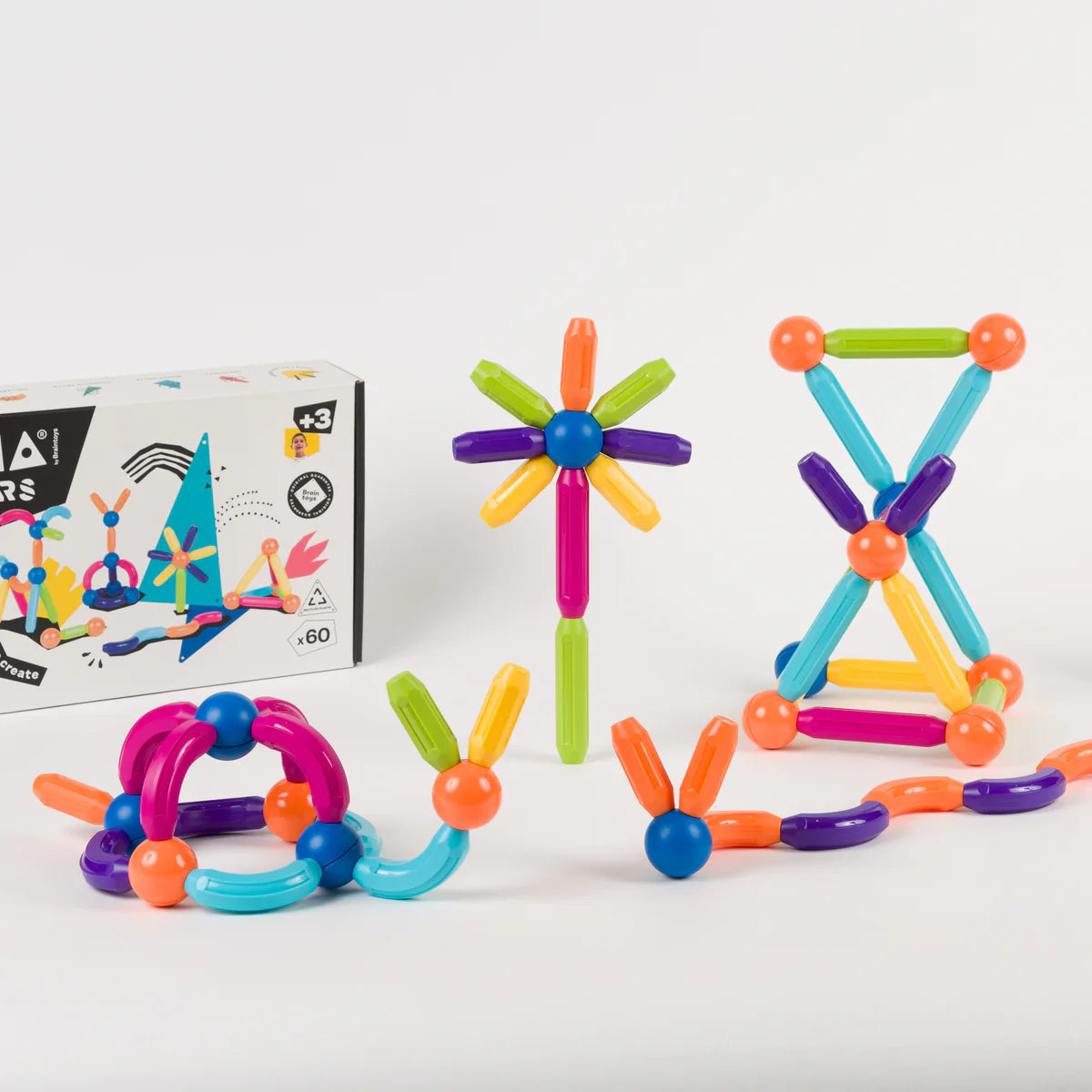 Imabars 60 pieces, 18 balls, 14 bars, 14 half bars, 14 curved bars