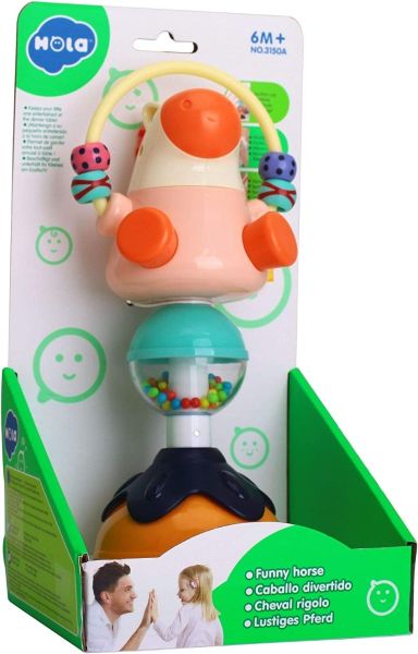 Este lindo y divertido caballo ofrece una combinación de diferentes materiales, colores y sonidos que están diseñados para fomentar la exploración independiente y estimular el sentido de la vista, el oído y el tacto de un niño.