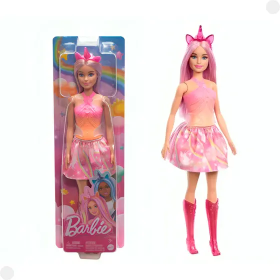 ÁLas mu–ecas Barbie Unicornio son pura magia! Cada una de ellas es un arco iris de colores con ropa fabulosa en tonos pastel y accesorios brillantes inspirados en unicornios. Demasiado encantadoras, estas mu–ecas Barbie inspirar‡n historias m‡gicas de aventuras para ni–os a partir de 3 a–os. Cada una se vende por separado, sujeto a disponibilidad. Las mu–ecas Barbie no pueden estar solas. Los colores y las decoraciones pueden variar.