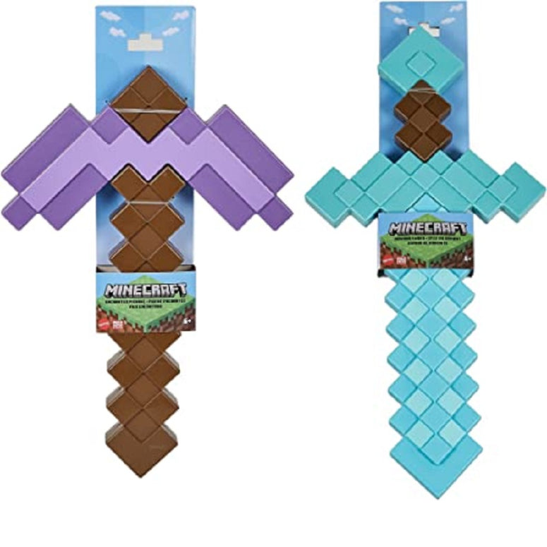 Contenido: La espada encantada y las armas "Iron Pickase" que son conocidas por todos los fanáticos de Minecraft. Genial para jugar de simulación para niños