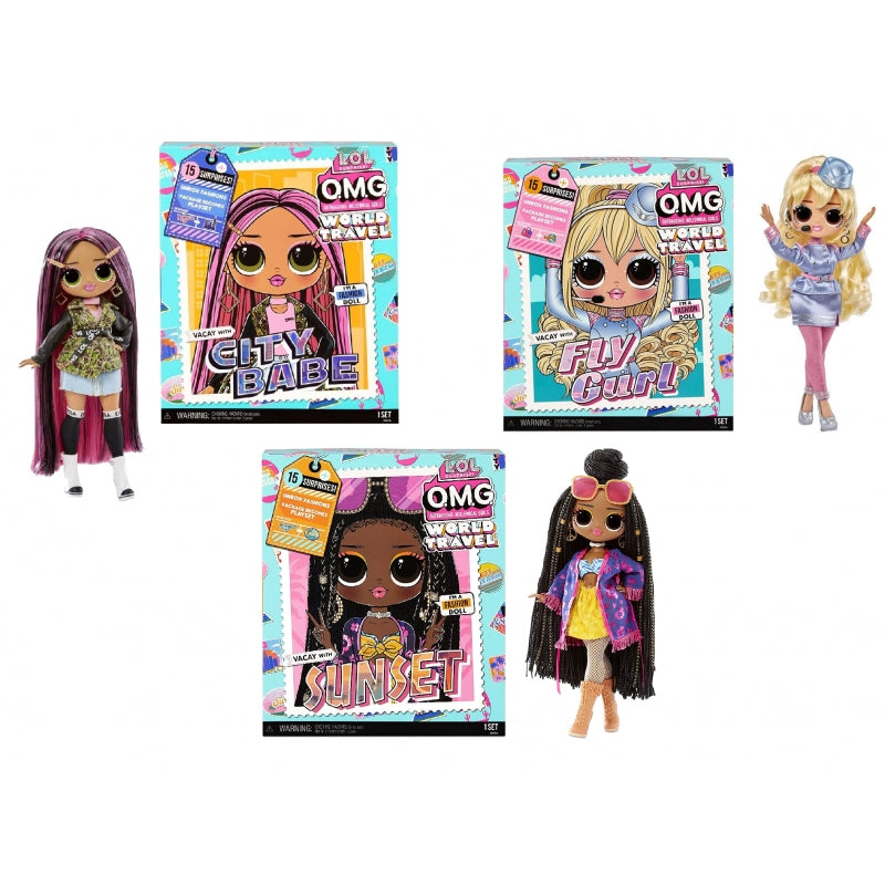 ¡Presentamos las muñecas de moda LOL Surprise OMG World Travel! ¡Las hermanas estan planeando unas vacaciones! ¡Tienen sus maletas empacadas y listas para pavonearse ferozmente alrededor del mundo! ¡Desde desfiles de moda hasta fiestas en la playa! Vienen 15 sorpresas con la muñeca LOL Surprise World Travel OMG, que incluye moda y accesorios temáticos de viaje como equipaje que realmente se abre.