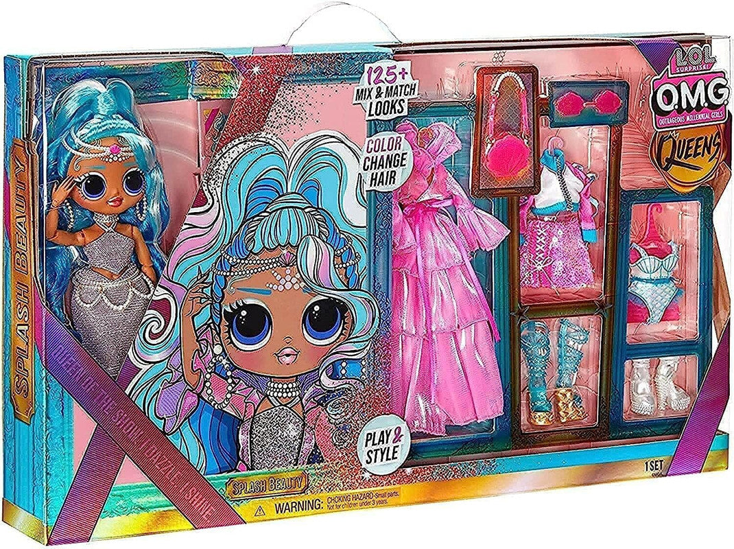 0Crea más de 125 looks de moda para mezclar y combinar con la muñeca de moda de LOL Surprise OMG Queens Splash Beauty, incluyendo moda brillante y accesorios temáticos reales como su falda de sirena, abrigo largo rosa, collar, traje de baño de 2 piezas y diadema.