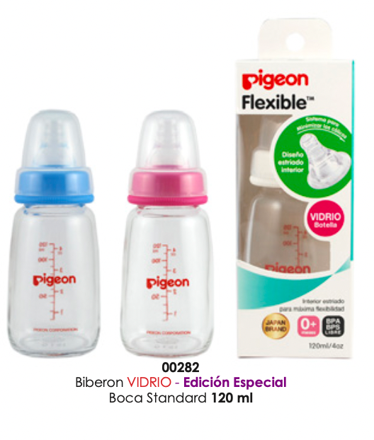 Mamadera vidrio 120cc. chup. peristáltico corte "S"