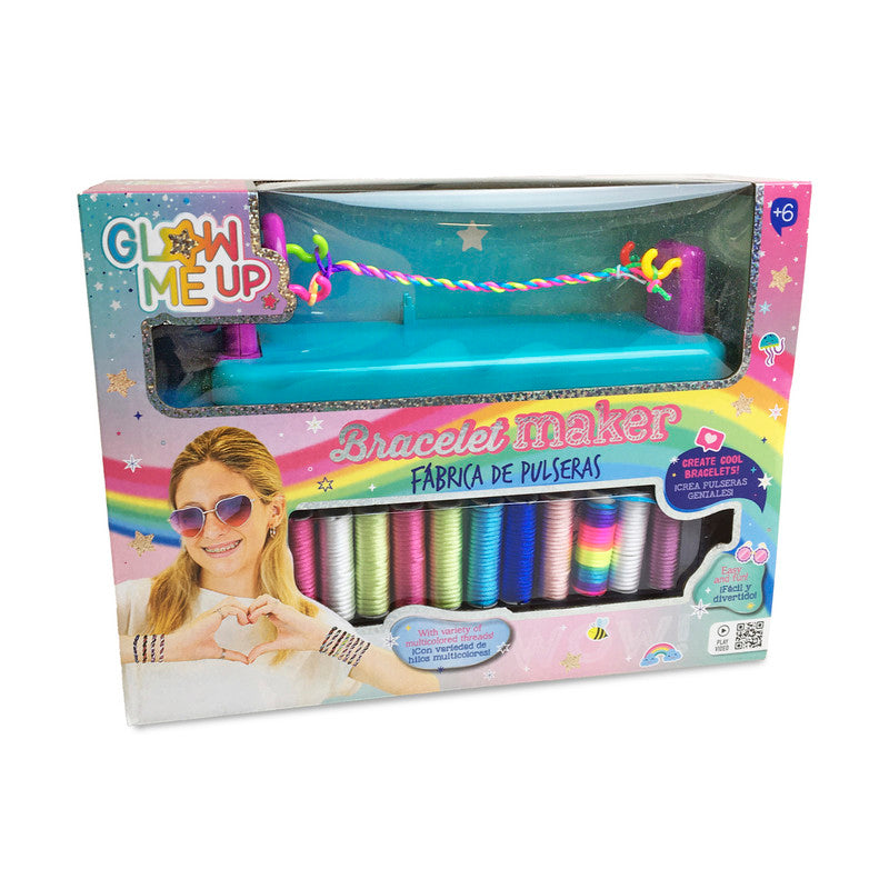 Máquina giratoria para hacer pulseras. Incluye 14 hilos, 14 mostacillas y 8 metros de hilo arcoíris.