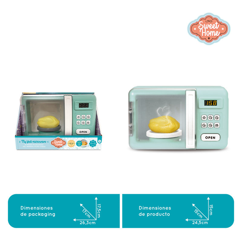 Microondas de juguete con luz, sonido, botón de prueba y función de cambio de color en la comida. Leer más...