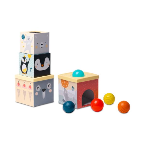 ¡A los bebés les encanta jugar al Peekaboo por una razón! Mientras juega con Taf Toys North Pole Ball Drop Stacker, el bebé dejará caer la pelota a través del agujero en la caja y se sorprenderá cuando desaparezca de su vista, solo para reaparecer de nuevo unos minutos más tarde.