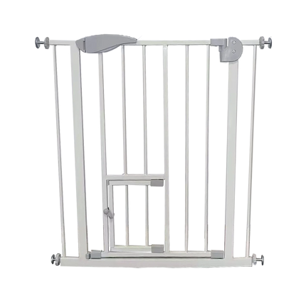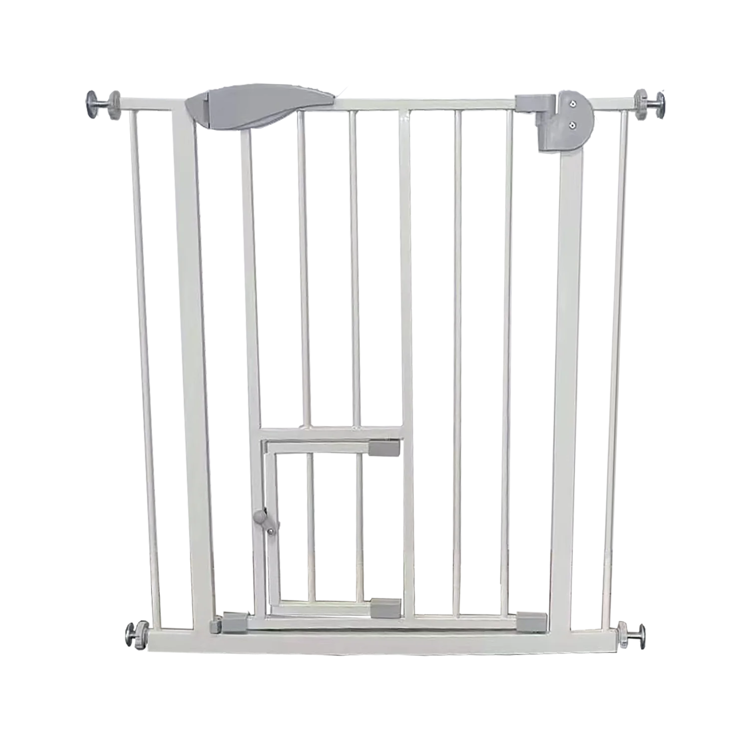 Reja de Seguridad Bebe Puerta Mascota Doble Seguro 75 a 82 cm Protege a tus pequeños y a tus mascotas con estilo y practicidad, ideal para mantener un entorno seguro en tu hogar. Características: Fabricada en acero tubular de máxima resistencia. Color blanco adaptable a cualquier decoración. Puerta pequeña integrada para mascotas de tamaño reducido (20.6 cm x 26 cm). Material resistente y duradero para uso prolongado. Instalación sin perforación. Doble bloqueo de seguridad. Apertura en ambas direcciones. Contenido: Incluye 4 piezas perilla y 4 piezas de goma. Dimensiones del artículo: Alto: 76 cm. Ancho ajustable: 75 - 82 cm. Barra lateral superior: 70 cm. Fondo: 2 cm. Peso: 3.8 kg. Dimensiones del empaque: 75 x 82 x 4 cm. Peso: 4.6 kg.