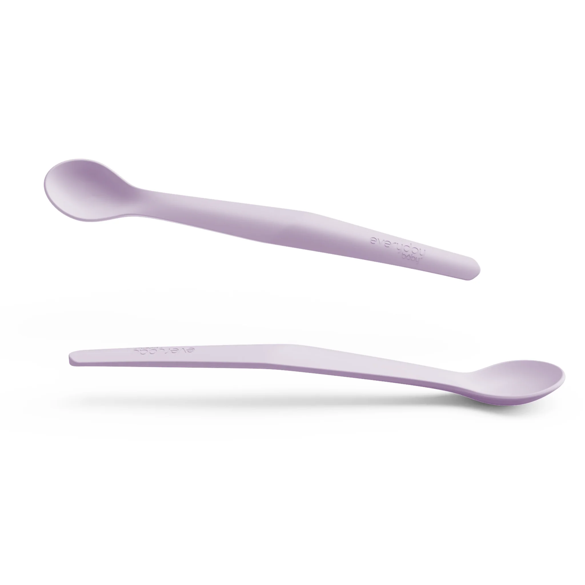 Pack De 2 Cucharas De Silicona Lavanda El pack de dos cucharas de silicona de Everyday Baby cuentan con un núcleo de metal, haciéndolas una muy buena opción para cuando tu bebé comienza a comer.