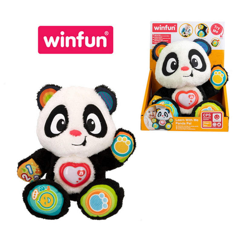 Aprende y diviértete con tu amigo de peluche, el Oso Panda interactivo, con luz y sonidos, podrá aprender números, letras y partes del cuerpo en español apretando sus extremidades e incluso divertirse con sus geniales melodías. Es tan tierno y suave que incluso podrán llevárselo a la cama para dormir. Utiliza 3 pilas AAA. Medidas del producto 27x14x33 cm.