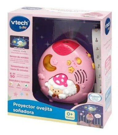 ¡Acurrúcate y duerme feliz! El bebé será el más feliz de la casa. Tiernas imágenes proyectadas en el techo, acompañadas de agradables melodías, sonidos y canciones formarán el ambiente ideal para obtener los más dulces sueños. Proyección de imágenes animadas en colores vivos en el techo para calmar al bebé durante la noche. 2 modos: canciones de cuna, melodías y dulces sonidos. Temporizador de 10, 20 y 30 minutos. Sensor de sonido que activa luces y música relajante para calmar al bebé cuando lo necesite. 40 melodías y 3 canciones. Tira de sujeción para acoplar a la cuna, aunque también puedes ponerlo en la mesilla. Posibilidad de desactivar la proyección luminosa para utilizar solamente el modo nanas mientras la luna se ilumina. Control de volumen.