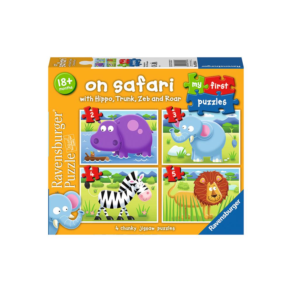 ¡Rompecabezas para principiantes! Este set incluye cuatro puzzles de dos, tres, cuatro y cinco piezas.