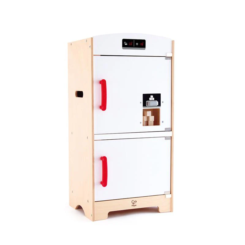 Refrigerador de madera con dos puertas, con un botón para hacer cubitos de hielo. Estimula el juego imitativo e imaginativo,... Leer más...