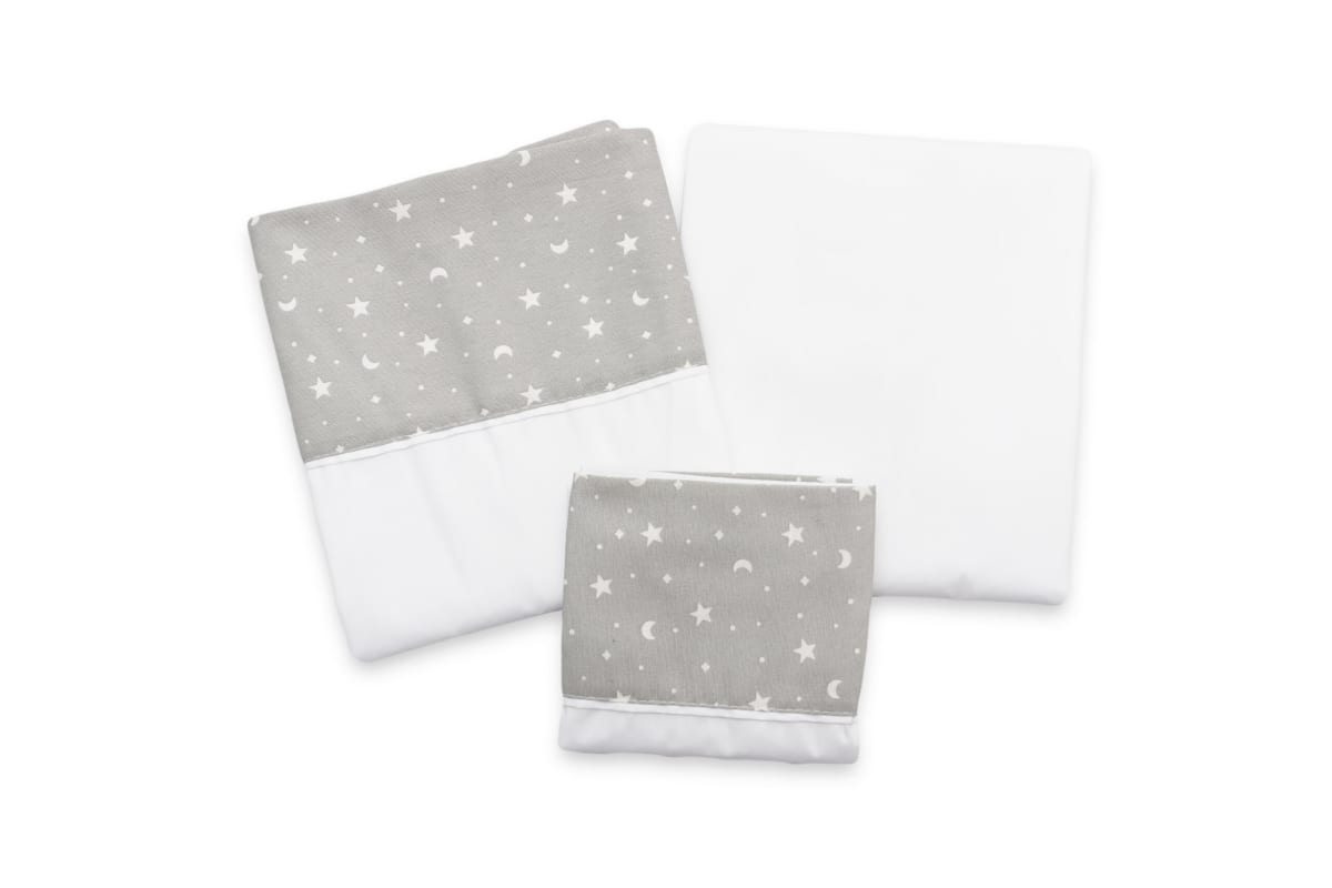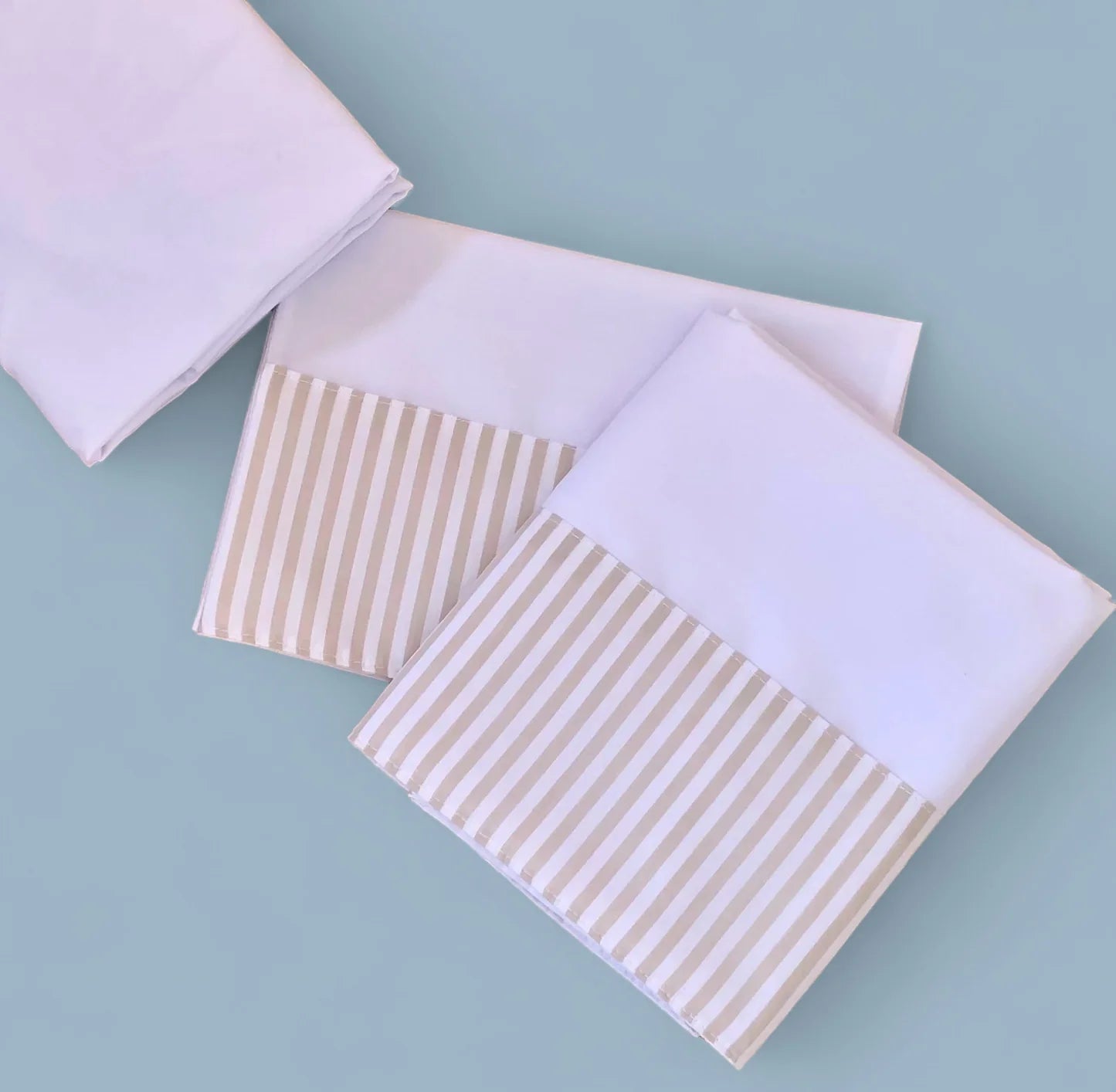 Incluye sabana encimera con elástico inferior, sabana bajera elásticada y funda de almohada.