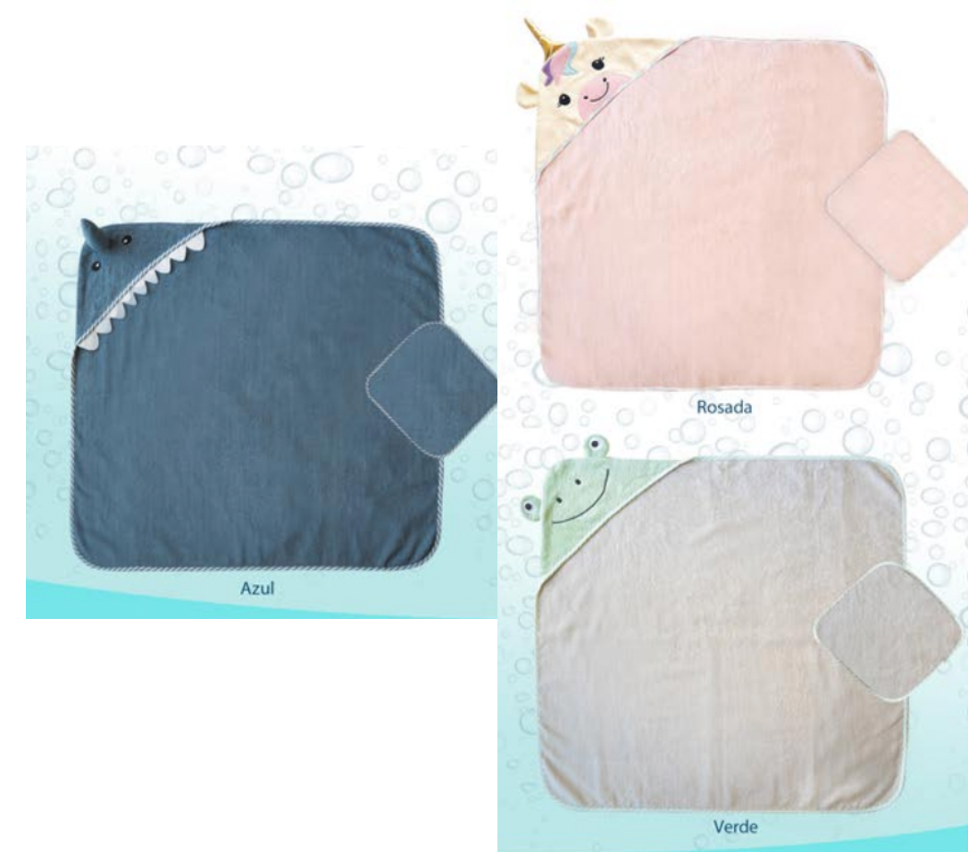 INCLUYE TOALLA DE CUERPO Y TOALLITA DE LIMPIEZA FACIAL,TELA 100% ALGODÓN, TOALLA CON CAPUCHA MIDE 76X76 CM Y TOALLITA FACIAL... Leer más...