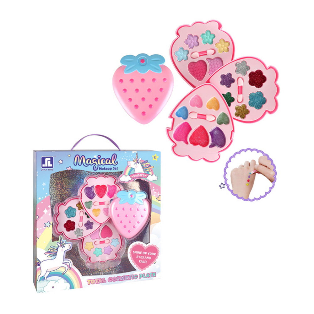 Juego de cosmŽticos para ni–as princesas de la casa, seguros para ni–os estilo fresa para ni–os, Kit de maquillaje, incluye l‡piz labial, aplicador de sombra. Medidas del empaque