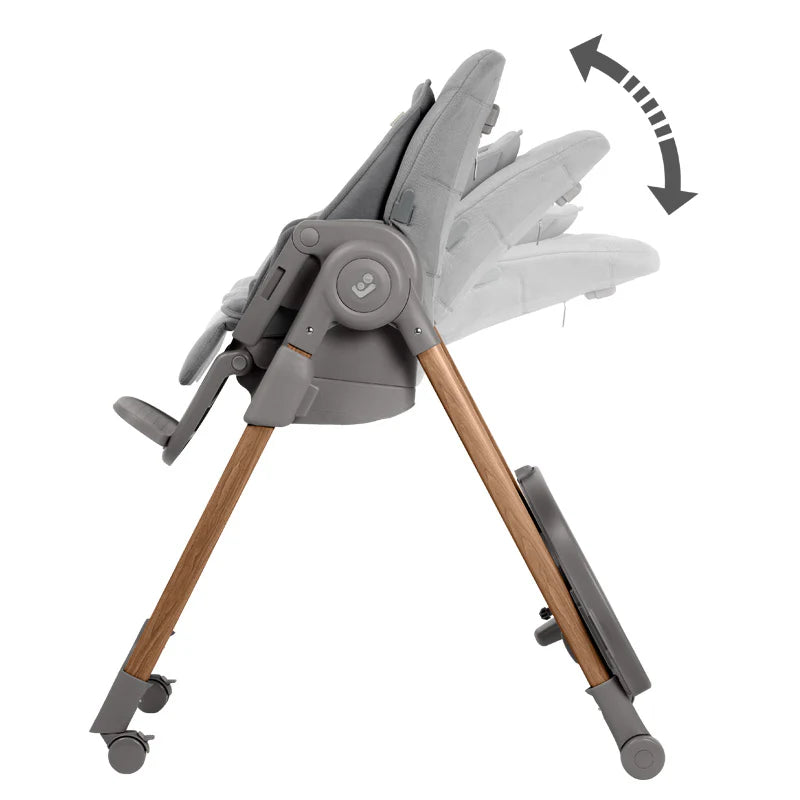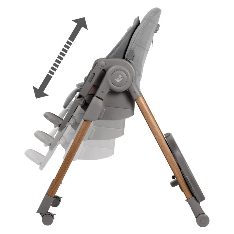 La Silla de Comer Alta Minla Pro Grafito de Maxi Cosi es fácil de mover y plegar, totalmente ajustable, de rápida colocación al niño y con un diseño moderno y elegante. Esta silla de comer se puede usar desde recién nacidos hasta los 14 años.