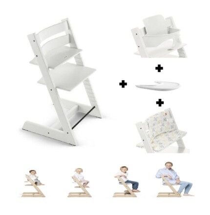 SILLA DE COMER DE MADERA CRECE CONMIGO CON ACCESORIOS BLANCA