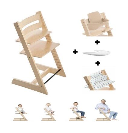 SILLA DE COMER DE MADERA CRECE CONMIGO CON ACCESORIOS NATURAL