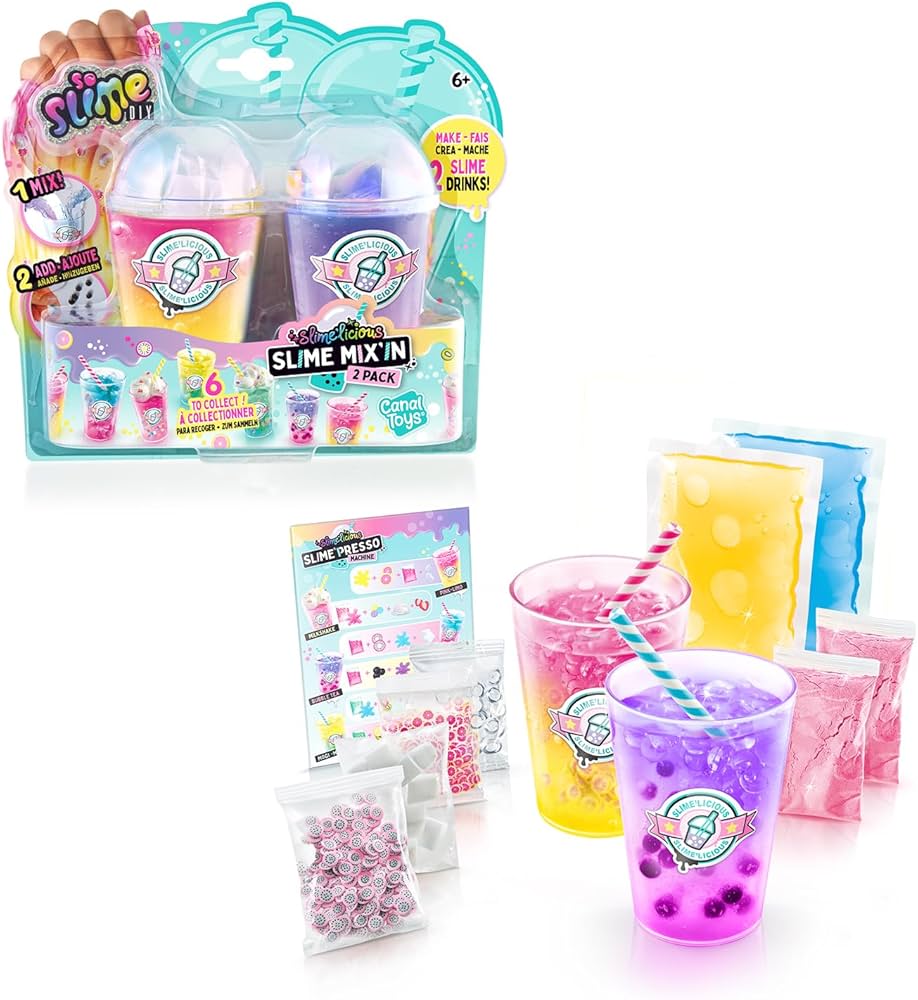 2 AGITADORES: Este pack de 2 agitadores incluye 2 polvos slime, 2 slimes ya hechos y 4 decoraciones, para que puedas hacer y coleccionar todas tus Bebidas Slime.
