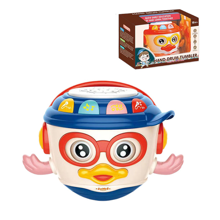 Tambor de mano para niños y niñas, Juguete multifunción educativo y didáctico, con proyector de luces parpadeantes con diferentes canciones, melodías y sonidos, utiliza 3 pilas AAA, dimensiones del producto 14x15x20 cm, viene en caja litografiada con ventana
