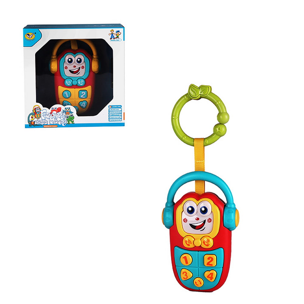 Teléfono musical. Proporciona infinitas horas de diversión y entretenimiento. Ayuda a mejorar las habilidades motoras y la coordinación ojo-mano. Con toques suaves encienden la Música y sonidos divertidos. Utiliza 2 pilas AAA. Medidas del empaque 16x6.5x15.5 cm.