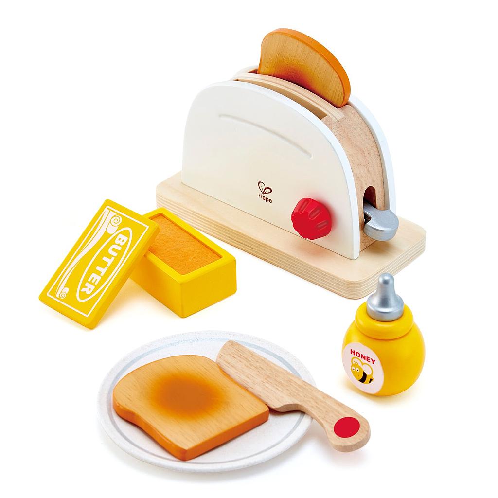 Tostadora de madera incluye dos rebanadas de tostadas, un plato, un cuchillo, cubos de mantequilla y un frasco de madera... Leer más...