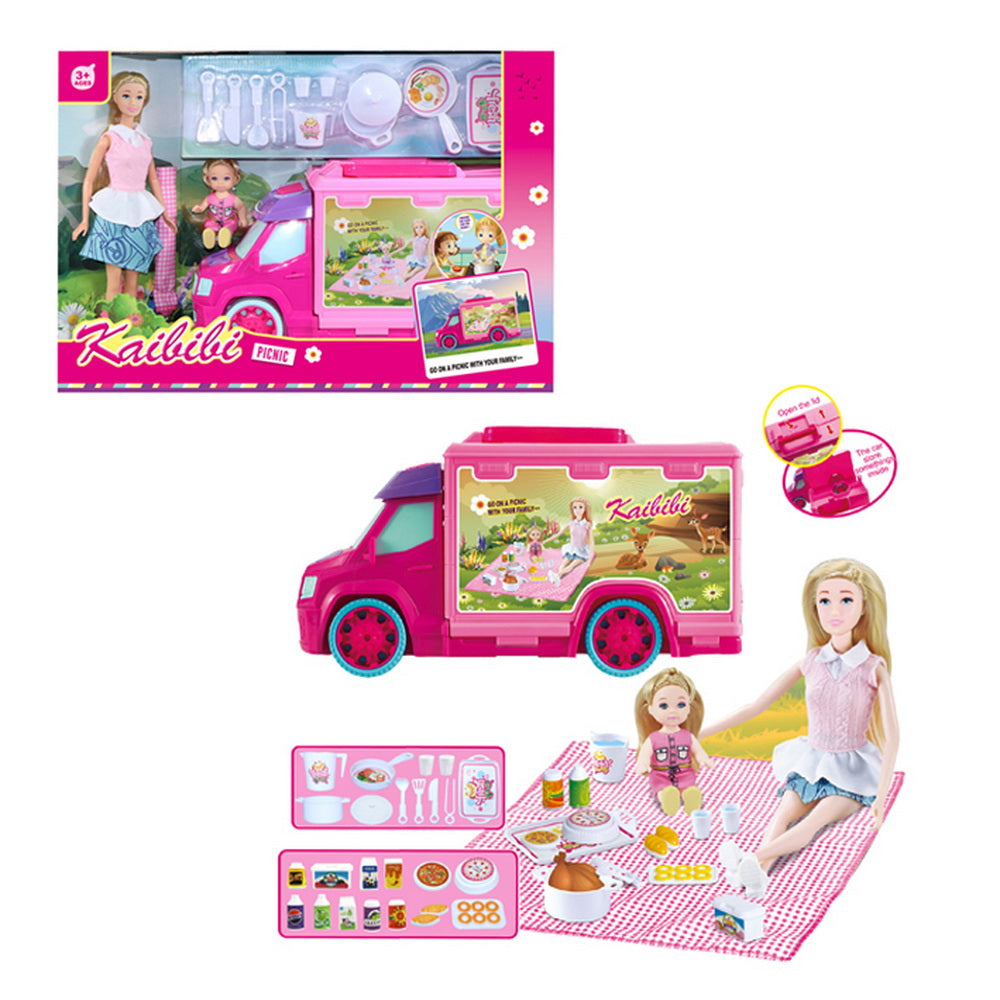 Mu–eca Kaibibi con un veh’culo de camping y equipo de cocina. El cami—n se puede abrir y almacenar los accesorios.... Leer más...