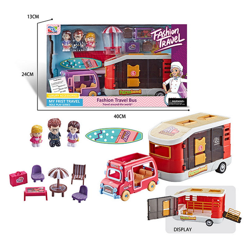 Vehículo Pink con remolque para animalitos, recrea divertidas aventuras con este juego, incluye 3 figuras de la familia, mesa, silla... Leer más...