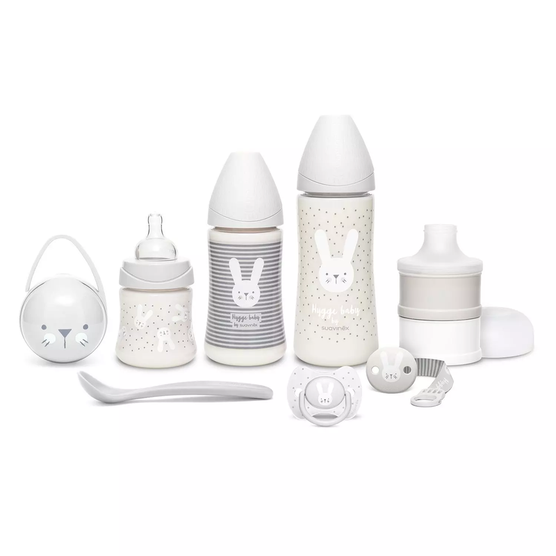 Conjunto completo para recién nacidos, color gris. Incluye: Biberón de 150 ml con tete de silicona redonda con flujo lento ideal para los primeros días de vida de los recién nacidos. Esta teta está equipada con un sistema anticólico. Biberón de 270 ml con tetina redonda de silicona con flujo lento que se adapta al ritmo de succión del bebé. Este chupete está equipado con un sistema anticólico. Biberón de 360 ml con chupete de silicona de flujo rápido, adecuado para comida para bebés o grandes comedores Chupete para bebé de 2 4 meses con tetina de silicona fisiológica, ideal para recién nacidos. Su forma plana y simétrica siempre se asienta correctamente en la boca del bebé y ejerce una presión mínima en el paladar. Cadena ficticia para máxima sujeción. Diseño reversible. Soporte de chupete premium con 2 compartimentos individuales para guardar dos maniquíes. Se puede separar para usar los dos compartimentos por separado. Dispensador de leche apto para lavavajillas con compartimentos separados. Cuchara de gran capacidad apta para lavavajillas. Este conjunto forma parte de la nueva colección Suavinex Hygge. Hygge se trata de medir el valor de las pequeñas cosas y sensibilizar a nuestro planeta. Hygge significa conectarse intensamente con el ahora y convertir un día ordinario en un día extraordinario. Las tetas ficticias están reconocidas por la Sociedad Española de Odontología (SEOP) y recomendadas por el sindicato de especialistas en ortodoncia italiano (ASIO). Sobre nosotros: somos Suavinex, una empresa especializada en el cuidado de bebés y maternidad. Todos nuestros productos están hechos con el máximo cuidado y amor, y es por eso que defendemos la seguridad y la confianza. Como resultado de nuestros constantes esfuerzos e innovaciones, ofrecemos un catálogo completo de productos con materiales libres de bisfenol A y una gama de cosméticos innovadores y de alta calidad para mujeres embarazadas, madres y bebés.